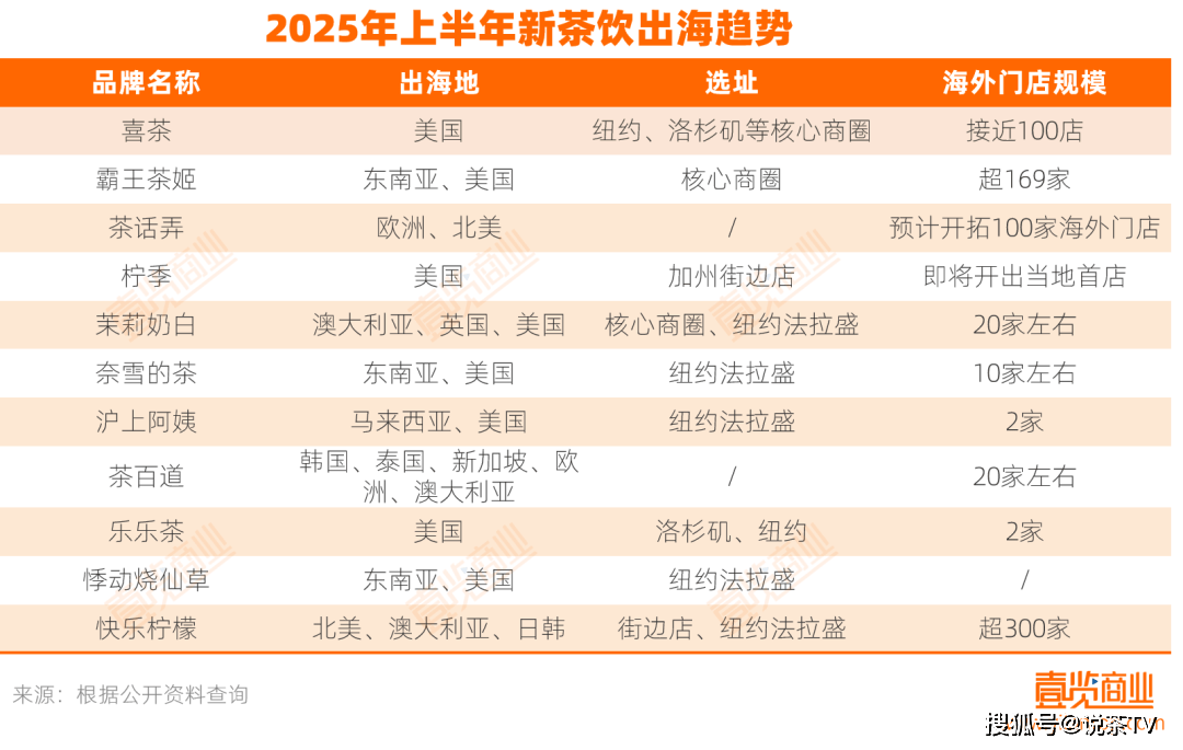 讲话人毛宁曾针对新茶饮海外上市的环境回应,中国品牌凭仗科技含量、文化底蕴、设想灵感以及融通中外的感情价值,正正在博得越来越多海外消费者青睐。按照2025年上半年新茶饮出海趋向来看,美国是浩繁品牌的焦点选择。喜茶、霸王茶姬等头部品牌优先入驻焦点商圈,借帮高流量和强消费能力树立身牌抽象;欢愉柠檬等则通过街边店提拔度,吸引散客消费。新茶饮出海正朝着多元化标的目的成长,笼盖区域不竭扩大,选址策略更趋矫捷。
